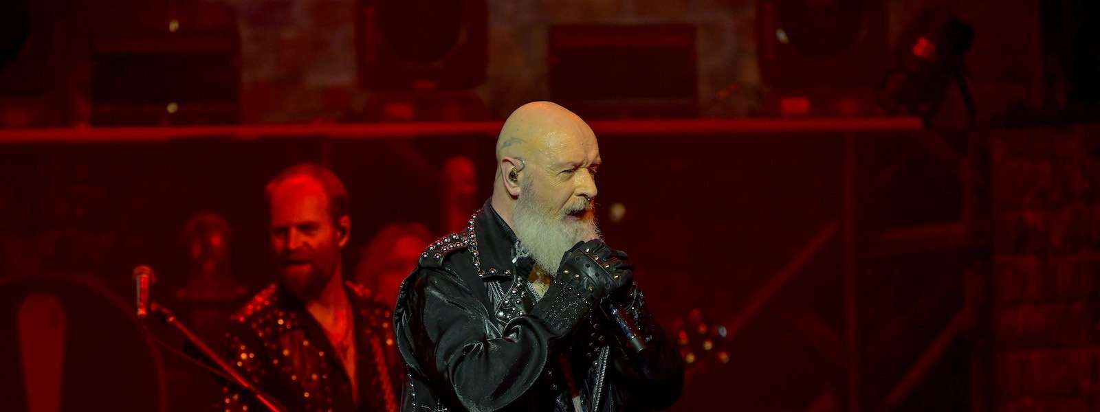 The emblem lifted back up revealing Rob Halford with band members, Andy Sneap (guitar), Richie Faulkner (guitar), Ian Hill (bass) on his sides and Scott Travis on the drums behind him. The opening line “Let me hear the battle cry Calling on the wind” set the tone and the metallic frenzy ensued.