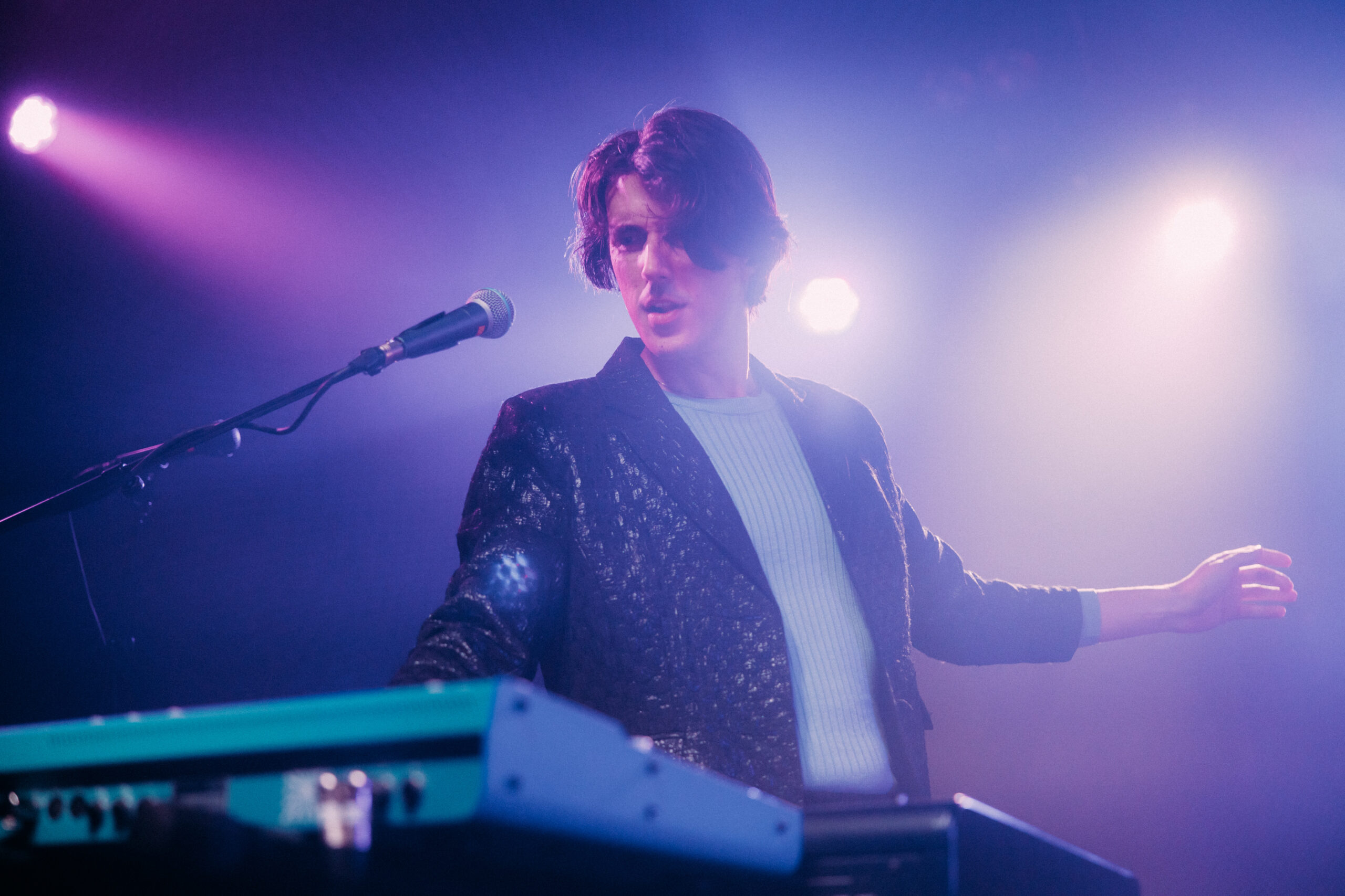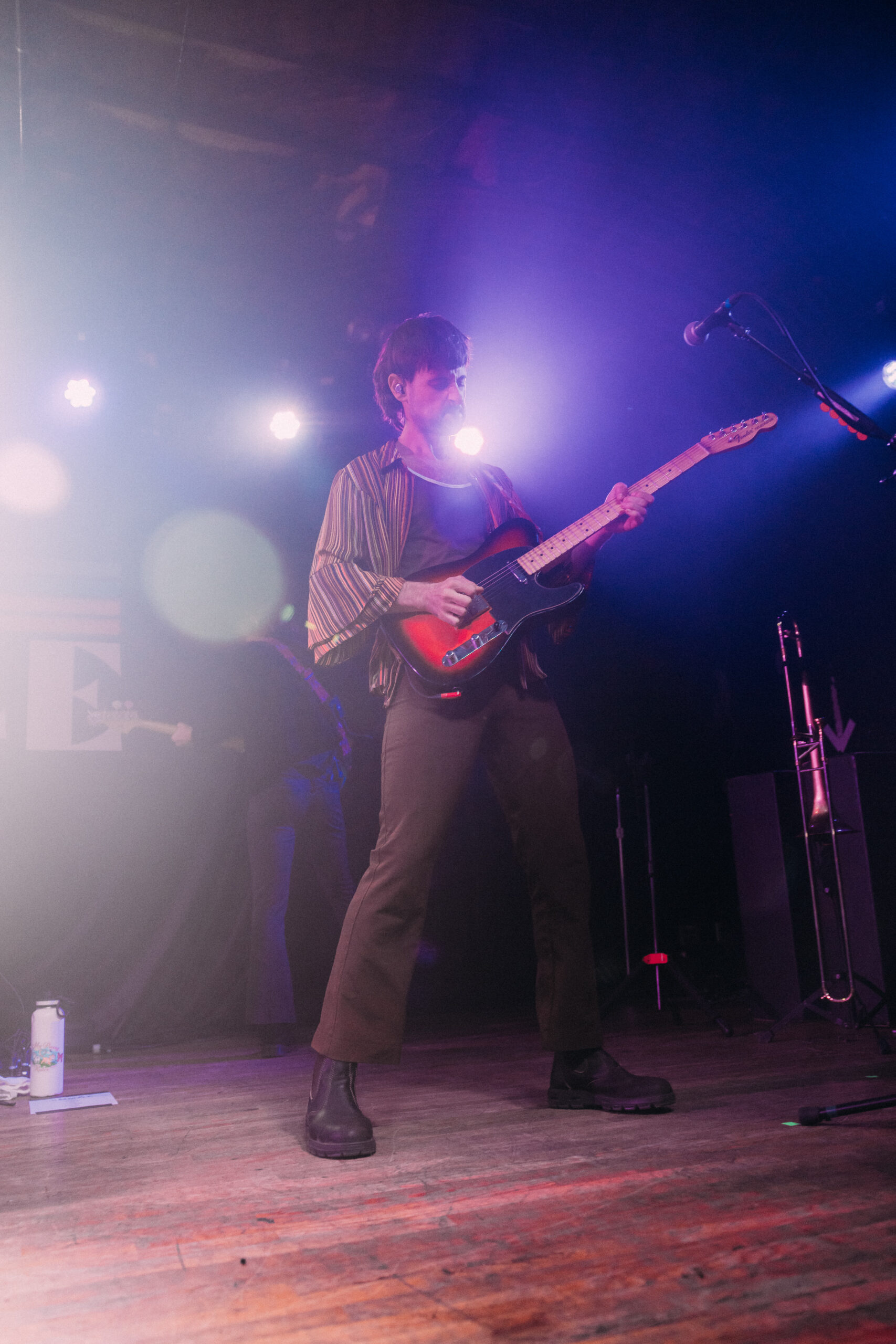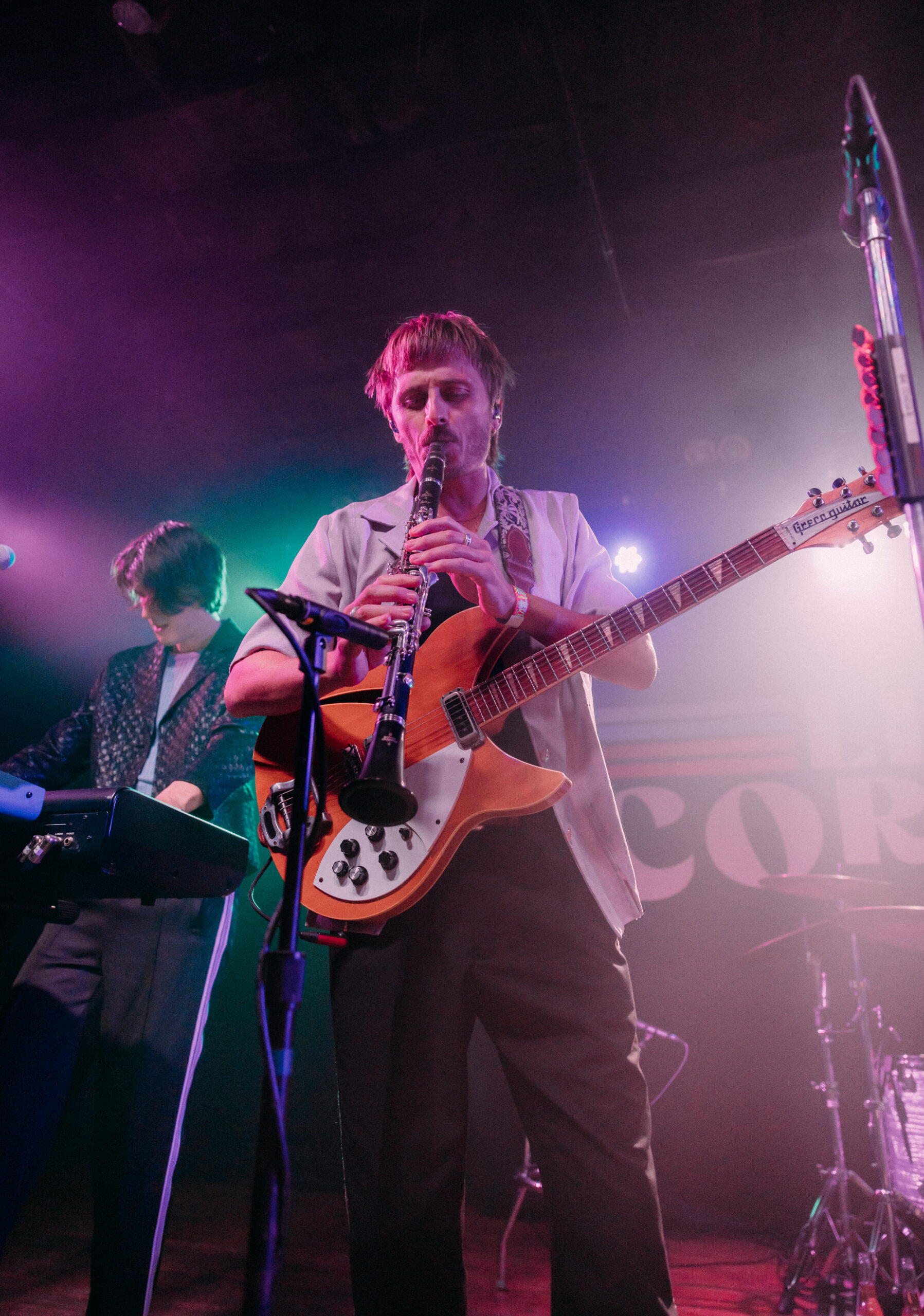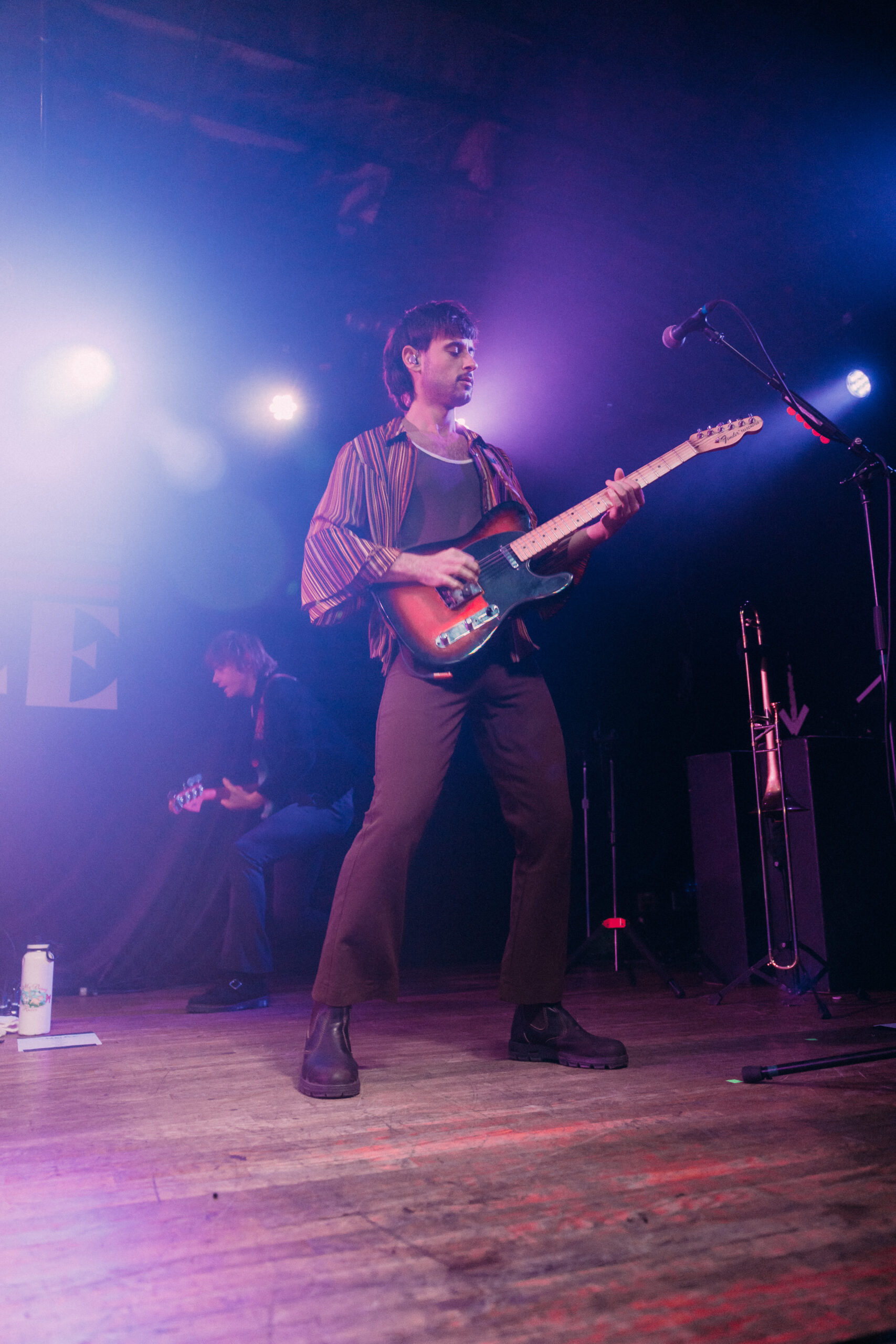Their first few songs, “Imposter Syndrome,” “Money,” and “Naturally,” all brought classic rock vibes to the tightly packed room. The Leimbach brothers constantly switched from lead to backing vocals for each other, creating a unique experience. Louis and Oliver were made to be frontmen. They spoke to the crowd and garnered our attention with not only their music but also humor and true musical talent. The crowd went crazy with the addition of eccentric instruments, keeping the show engaging.