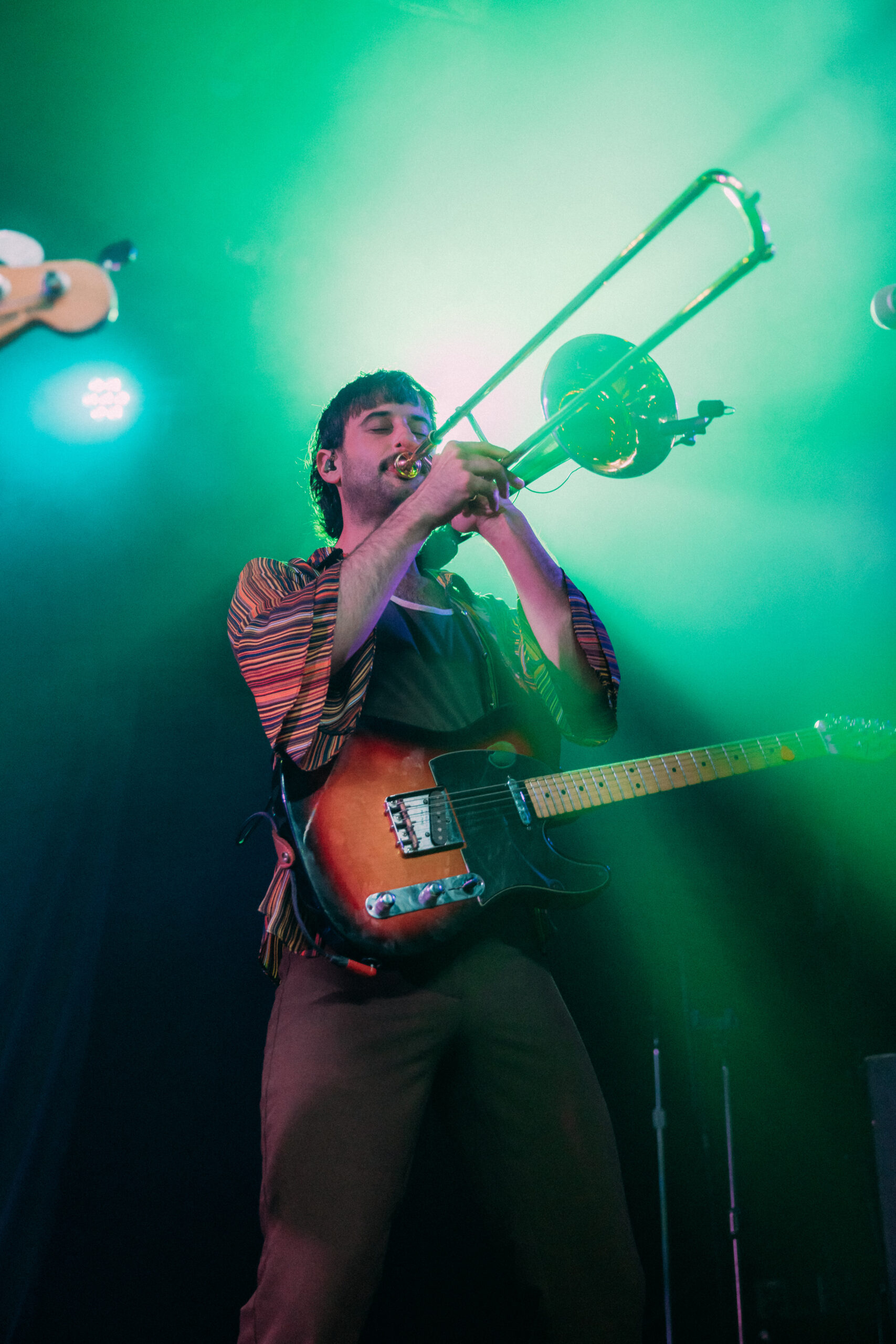 The band is classified as an indie rock band, but they go much deeper than that. Lime Cordiale seamlessly blends jazz, classic rock, punk, 80s pop, indie sleaze, surf rock, and softer dream pop, offering a music experience that is both dynamic and multifaceted. All of the members floated various instruments around the stage, including bass guitars, lead guitars, trumpets, clarinets, trombones, and even a kazoo at one point. There was never a dull or expected moment in the show. The crowd was constantly kept on their toes with surprises left and right.